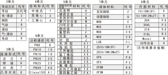 蝶閥型號編制方法