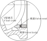 V型球閥采用帶彈簧或板簧加載閥座結(jié)構(gòu),由于彈簧/板簧的彈性恢復(fù)力推動(dòng)閥座,可使球芯與閥座之間長(zhǎng)期具有良好的密封性能。同時(shí)由于閥座采用彈簧加載的活動(dòng)結(jié)構(gòu),可使閥座自動(dòng)校正,以達(dá)到與球芯的最佳吻合。