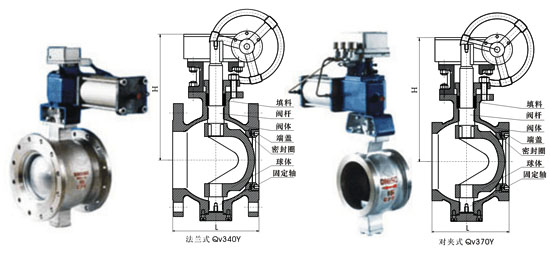 蝸輪V型球閥 Qv后插入“3”表示,示例:BQ340F-16C Qv后插入“3”表示,示例:DYQ340F-16C