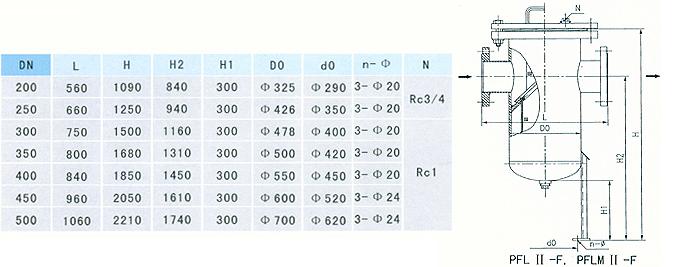 (4)籃式法蘭連接直通封頭式過濾器(PFL IIF)  (PN5.OMPa DN200500)