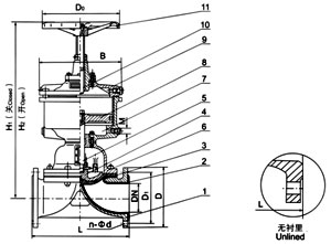 用途:本閥專用于控制非腐蝕性或一般腐蝕性介質(zhì),閥體內(nèi)腔表面無襯里或覆有可供選擇的各種橡膠,適用于不同工作溫度和流體管路。適用溫度:≤85℃、≤100℃、 ≤120℃、≤150℃(按照襯里和隔膜材料)