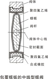 密封結(jié)構(gòu)采用聚四氟乙烯、合成橡膠和酚醛樹脂構(gòu)成復(fù)合閥座、使閥座在具有彈性的同時強(qiáng)度更好。同時將蝶板用聚四氟乙烯全包覆,使蝶板具有較強(qiáng)的抗腐蝕性能。