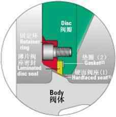 彈性座密封結(jié)構(gòu),采用偏心蝶板安裝在閥桿上,其邊績?yōu)榍蛐?、錐形兩種,并與彈性密封圈相配合.密封圈做成L形和U形兩種,與蝶板密封面相吻合。密封副在介質(zhì)壓力作用下,產(chǎn)生微小的彈性變形,從而實現(xiàn)密封。根據(jù)閥門的公稱通經(jīng),公稱壓力選擇其結(jié)構(gòu)形式,根據(jù)承壓受力設(shè)計密封圈壁厚。
