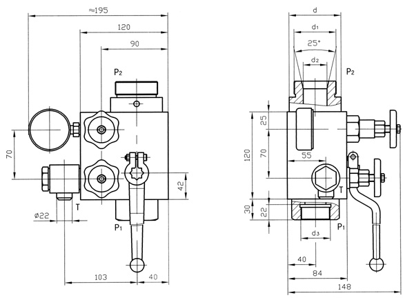 ② 進(jìn)油口:L-直通式、LS-直角式、LW-三通式