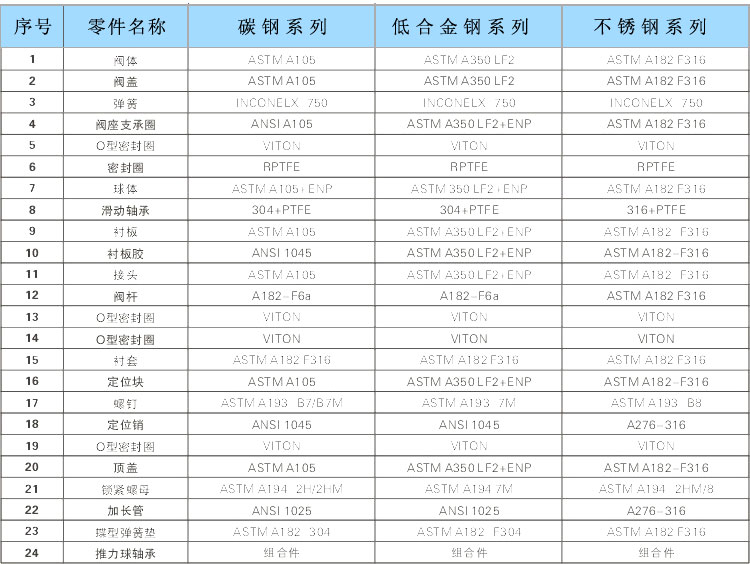 2.由于閥座是由碳化特氟隆密封環(huán)及咖彈簧構(gòu)成的,所以對壓力和溫度的變化適應(yīng)能力強,在標(biāo)注壓力和溫度范圍內(nèi)不會產(chǎn)生任何泄滑。