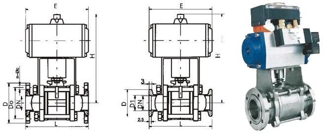 原理: 采用氣動執(zhí)行器驅(qū)動閥桿轉(zhuǎn) 90º達到開關(guān)目的。